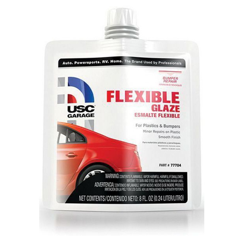 • The USC 77704 Flexible Glaze 8 fl oz Pouch is a polyester finishing glaze designed for repairing flexible and rigid automotive parts such as bumpers, fascias, plastics, fiberglass, and metal surfaces. It provides excellent adhesion, flexibility, and a smooth, sandable finish as a final coat over body filler.
