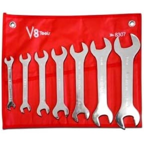 - The V8 Tools 8307 Super Thin Wrench Set is a great value for anyone looking for a set of thin wrenches. The set includes 7 wrenches in sizes ranging from 3/8" to 1-1/4", and each wrench is made from high-quality manganese alloy steel. The wrenches are heat treated and tempered to maximize strength, and they feature a polished finish that resists corrosion. The wrenches are also very thin, making them ideal for use in tight spaces.